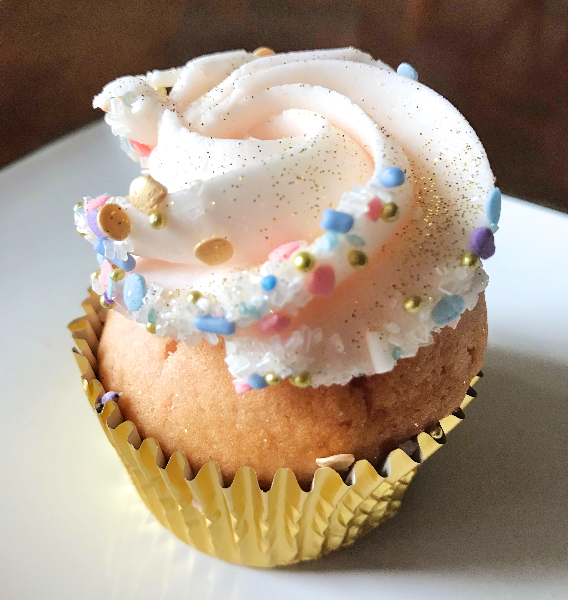 I also chose a Pink Champagne cupcake (one of Frosted’s most popular flavors). The cake was a pretty blush color, and the delicious champagne buttercream was topped with a dusting of glitter and sprinkles.