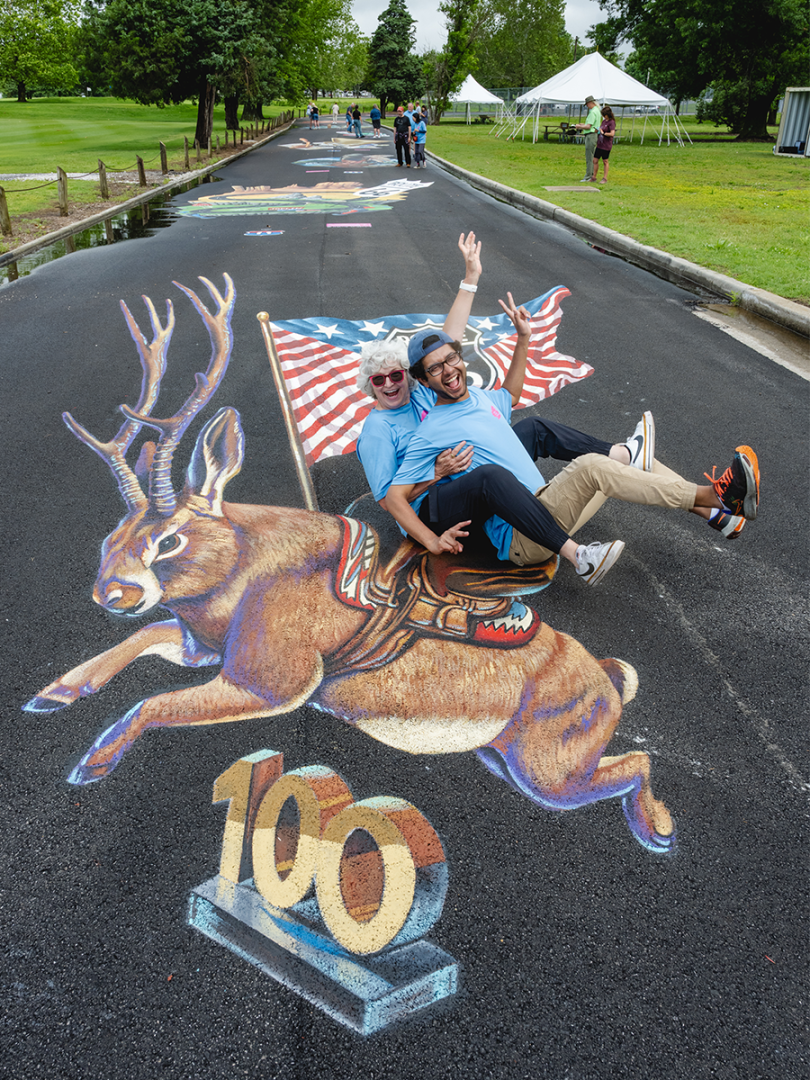Do jackalopes exist? This mythic hare with antlers invites views to hop on its back for a Route 66 ride through the desert Southwest.