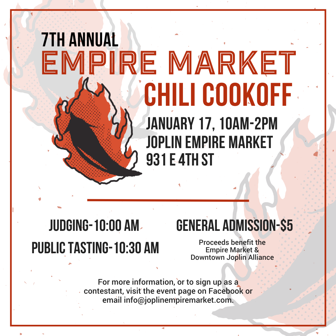 The Joplin Empire Market and the Downtown Joplin Alliance will be hosting the 7th Annual Empire Market Chili Cookoff at the Market on January 17!