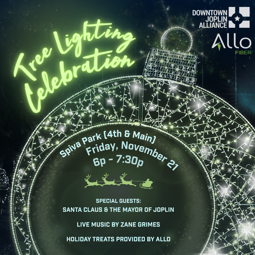Start your holiday season off merry and bright! Join the Downtown Joplin Alliance at Spiva Park at 4th & Main as we gather to spread holiday cheer by lighting up the Downtown Holiday Tree!