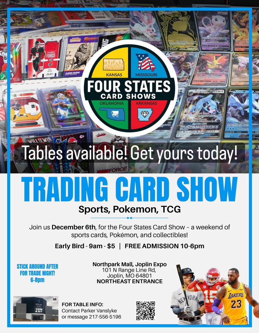 This is a free, family-friendly event open to everyone. The Four States Card Show will have cards from all TCGs, fandoms, and sports teams available to trade/buy/sell at the show!